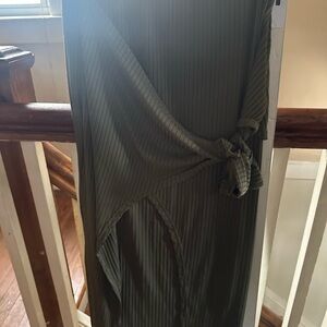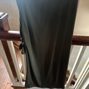 Stylish green ribbed long skirt with the matching top with a tie detail.