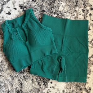Yoga Shorts for Women Bodycon 2 Piece Outfits GMY Fitness Sport Bra Workout Outfits Green XS
