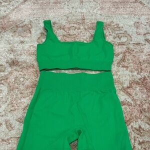Bright green ribbed set from Amazon . Features a matching top and bottom. Perfect condition it's just too small on me :(