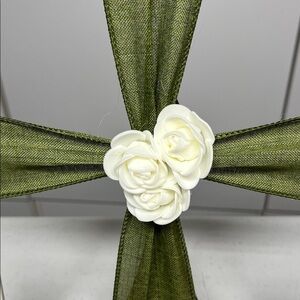 Green Ribbon with White Roses Frame Decor