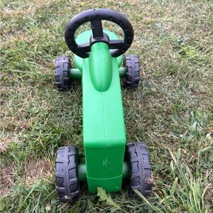 John Deere sit and scoot tractor. We didn’t put the stickers on it
