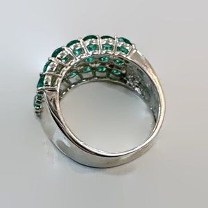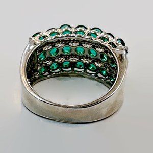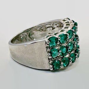 Green Ring, Wide, Faux Chrome Diopside, CZs, Sterling Silver, Vintage, Cluster
