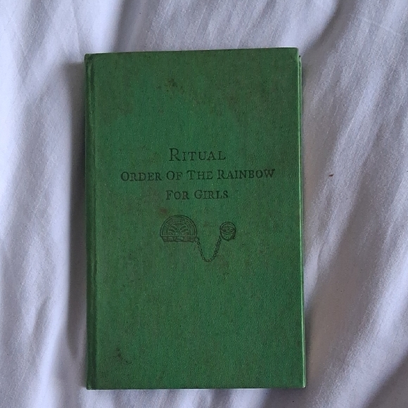 Green book titled 'Ritual Order of the Rainbow for Girls'. Mint, vintage, used condition.