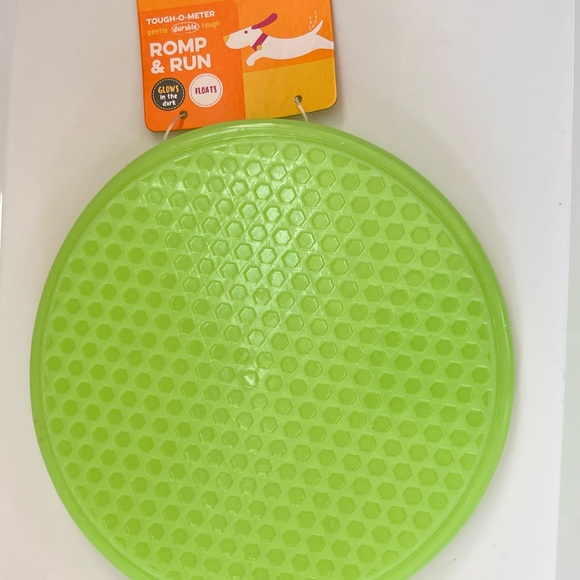 Durable green dog toy. This durable toy not only glows in the dark but also floats. Perfect for playtime. Brand bew never used.