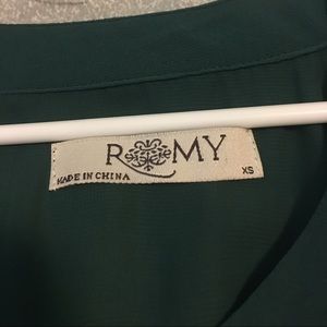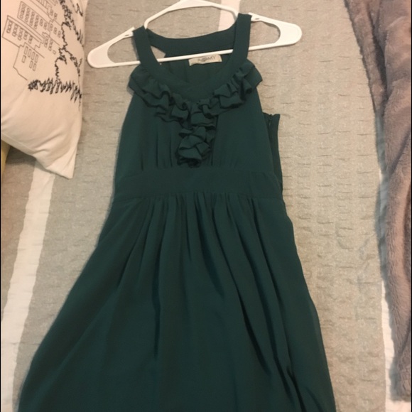 Green dress from Romy. Ruffle detail in front.