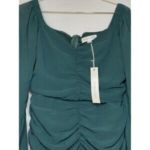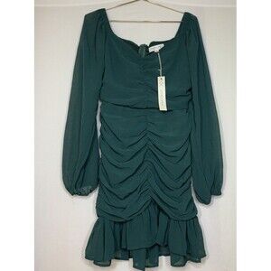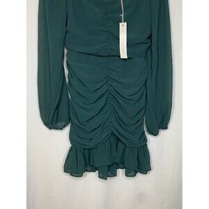 Green Ruched Chiffon Ballon Sleeve Mini Dress Christmas Holiday Cocktail Party