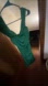Elegant green ruched midi dress, size Large. Features draped neckline, gathered detailing through the front, and a figure-flattering silhouette. Made from 90% polyester and 10% spandex for a comfortable stretch fit. Perfect for parties, weddings, or special occasions.