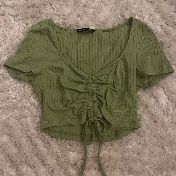 Elevate your style with this chic green ruched ribbed top. Perfect for any occasion, this top offers both comfort and elegance.