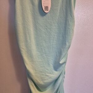 This stunning green bodycon midi dress features a flattering ruched design and a sweetheart neckline, perfect for cocktail parties or a night out. The sleeveless style and form-fitting silhouette enhance its elegant appeal, making it a must-have for your wardrobe. MEASUREMENTS ARE BELOW APPROX.