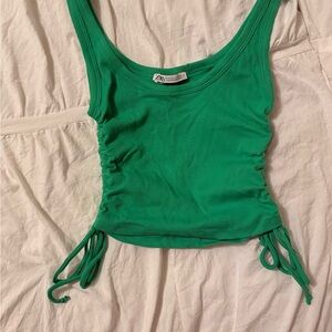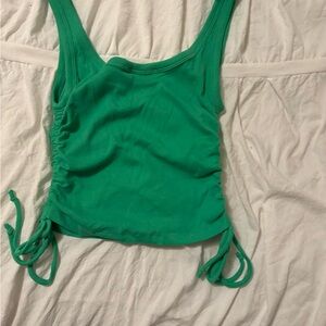 Chic green tank top with stylish ruched sides. Perfect for casual outings.