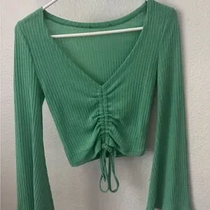 Green Ruched V-Neck Ribbed Top