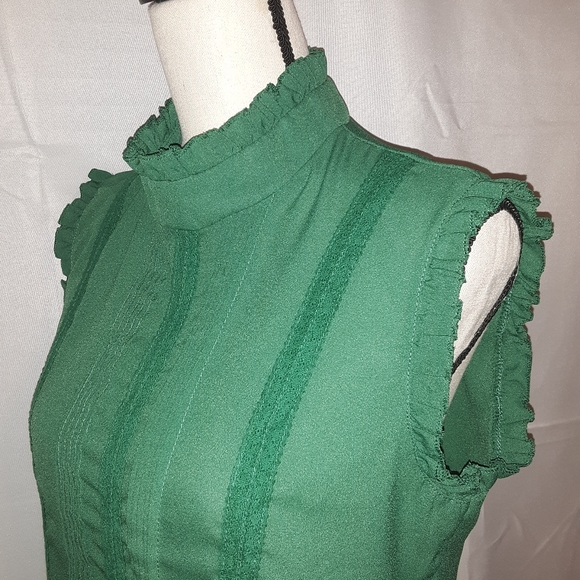 Good condition. No stains, tears, or loose threading. Wore once. Pretty sheer but not see through. Bought online. Didn't come with size or materials tag, but it is a medium but fitted. Button closure. Feels and looks like polyester.