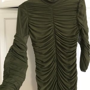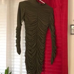This is a very cute dress it is very fitting to your body. Size is L but it fits good if your a medium.