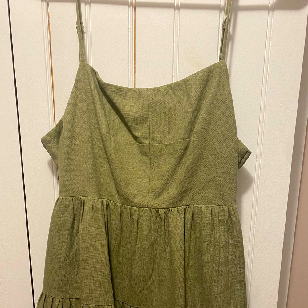 Green ruffle dress, midi length, tie open back detail. Never worn!