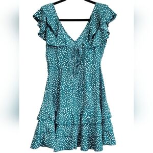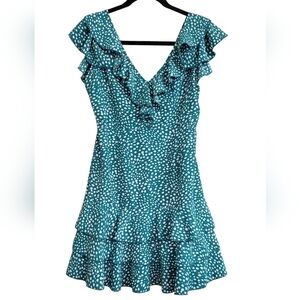 Elegant green teal dress with playful ruffles. Perfect for any occasion.