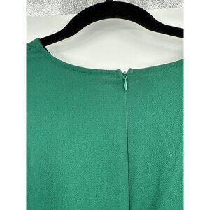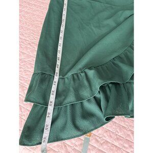 This elegant green dress is designed with long sleeves and a ruffle hem, adding a touch of sophistication to your wardrobe. The fabric blend ensures a comfortable fit, making it suitable for various occasions. With its understated style, this dress is a versatile addition to any closet.