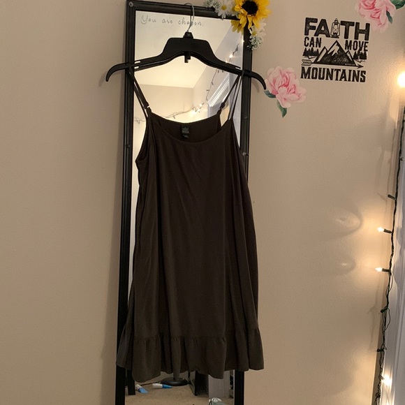 Army green ruffle spaghetti strap mini dress