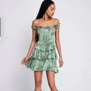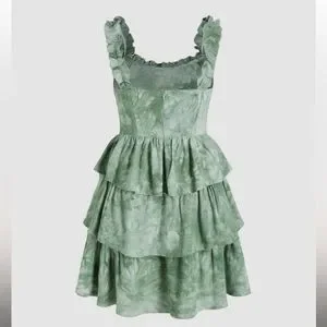 CIDER tie dye green ruffle dress. Worn once and wasn’t the happiest when I got it in the mail, but still cute and comfortable!