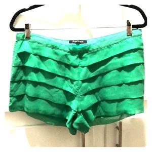 Super cute! Layered kelly green ruffle shorts. Side button and zip. Fully lined. Never worn. Flat lay: 17” waist 10” length.
