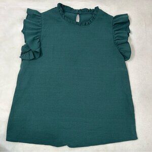 Green Ruffle Shoulder Business Work Blouse Top Shein • size L • preowned