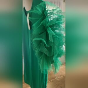 This vibrant green tee features stylish ruffle sleeves, perfect for adding a pop of color to your wardrobe.
