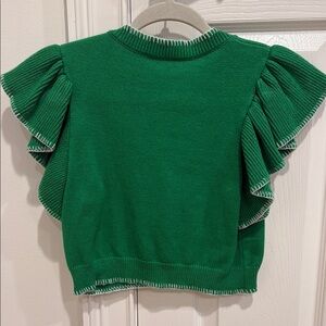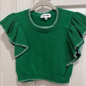 Brighten up your wardrobe with this vibrant green top from . Featuring playful ruffle sleeves, it's perfect for any occasion. A bit cropped.