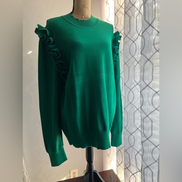 Elegant green sweater with stylish ruffle details. Perfect for adding a touch of flair to your wardrobe.