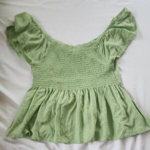 Chic and stylish green ruched top perfect for any occasion. Features a flattering fit and elegant design.