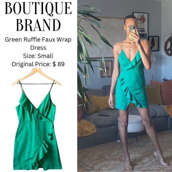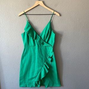 Green Ruffle Faux Wrap Dress