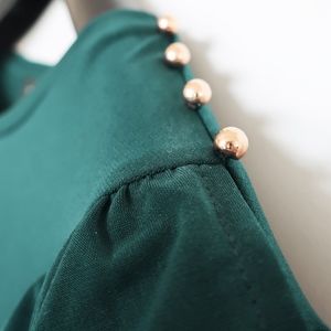 Take a break from your hectic day to sip on some Prosecco in this Ivanka Trump Green Ruffled Blouse! This super comfy fabric has a ruffled mid-section with gorgeous gold beaded shoulder accents. Original tags still attached!