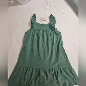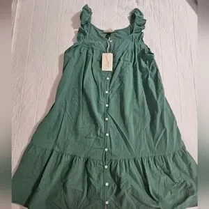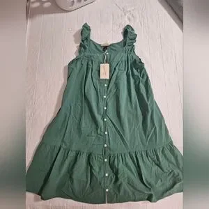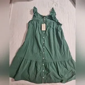 Chic green dress with ruffled straps. Button-down front adds elegance. Perfect for casual outings.