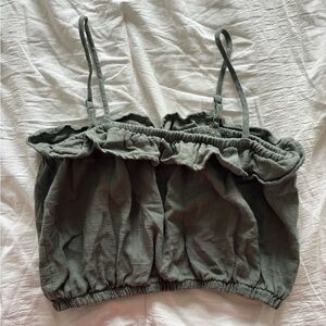 Stylish green crop top with ruffle details. Perfect for casual wear.