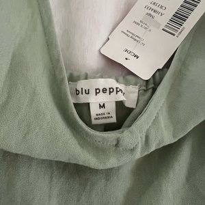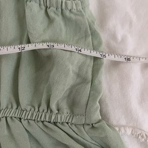 Super cute green dress with ruched sleeves and ruffled hemline.