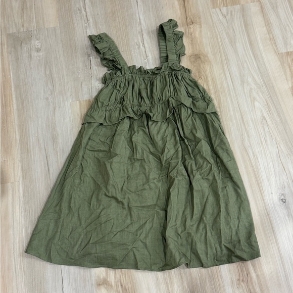Charming green kids dress with ruffled straps and a playful design. Perfect for any occasion.