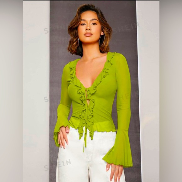 Green Ruffled Mesh Blouse