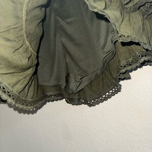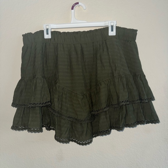 Chic green mini skirt with ruffled layers. Perfect for casual outings. Built in shorts. Unworn.