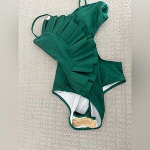 ⭐️NEW WITH TAGS ⭐️Stylish green one-piece swimsuit with ruffle detail. Perfect for a chic beach look.