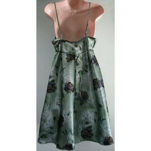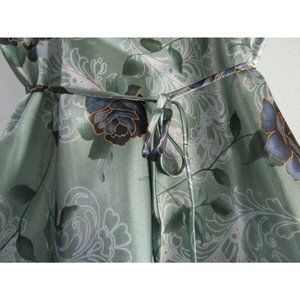 Green Satin Blue Roses Lace Chiffon Trim Negligee Medium Secret Treasures EUC