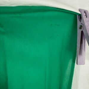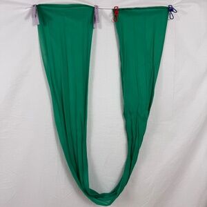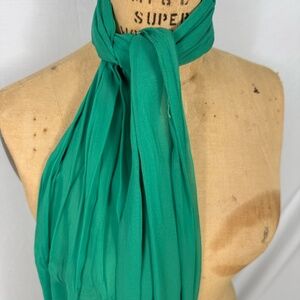 Gorgeous green silk-like scarf. It measures approximately 10" x 71" so it is perfect for a neck scarf, hair accessory, or belt. No tags.