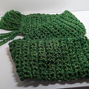 Green Scarf 67x7 Retro Chunky Handmade Crochet Hand Knit Christmas Gift NWT