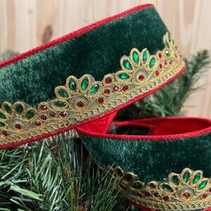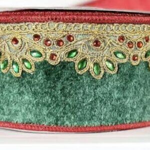 Green Scrolled Jewel Velvet Ribbon Christmas Trim Trimming Craft Supplies