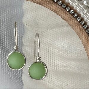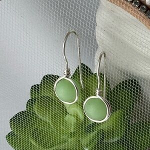 Green Sea Glass Minimalist Wire Wrapped Earrings