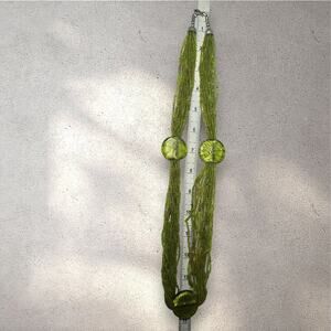 Elevate your style with this unique vintage-inspired necklace, featuring a stunning combination of vibrant green beads and intricate details. The necklace showcases three large, glossy beads, each with a captivating crackle finish that catches the light beautifully. Strung together with multiple strands of delicate, shimmering seed beads, this piece adds a touch of elegance and color to any outfit.