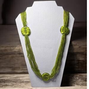 Green Seed Beaded Multi-strand with Vintage Necklace