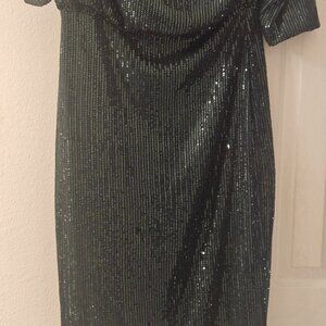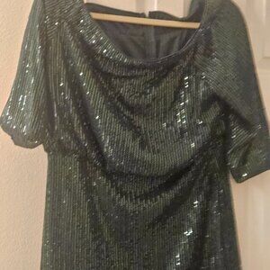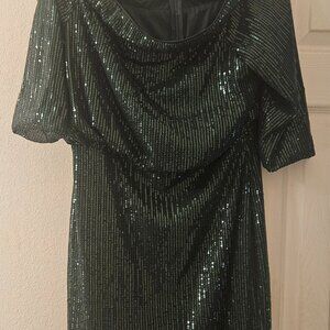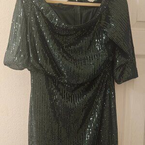 Green Sequin holiday christmas party occasion stretch midi sexy