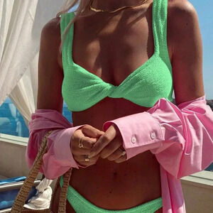 Green Sexy Women's Ruched Texture Twist Front Bikini Set