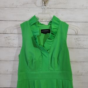 Green Sheath Knee Length Ruffle Dress Size 6 Petite