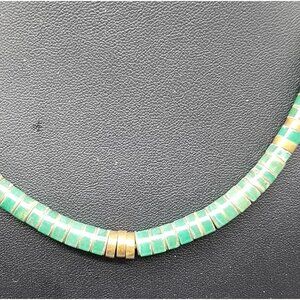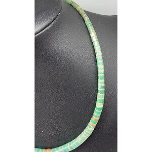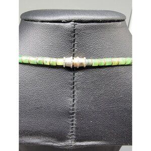 Green Shell Heshi Necklace 16" Chocker Style Graduated Discs Semi Translucent