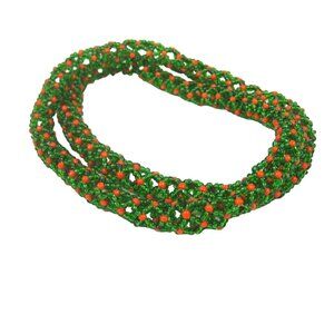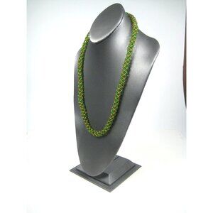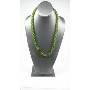 Green Shiny Seed Glass Beaded Rope Necklace Woven 26 inch Strand NO CLASP