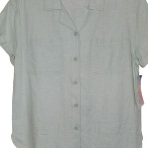 Green Short Sleeve Boxy Button Down Shirt. NWT